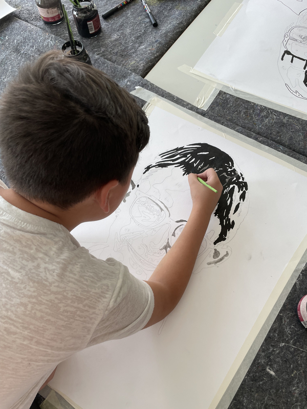 Zehn Tage lang widmen sie sich intensiv ihren eigenen Gesichtern – genau beobachtet, auf Papier gebracht und mit starken Kontrasten herausgearbeitet.